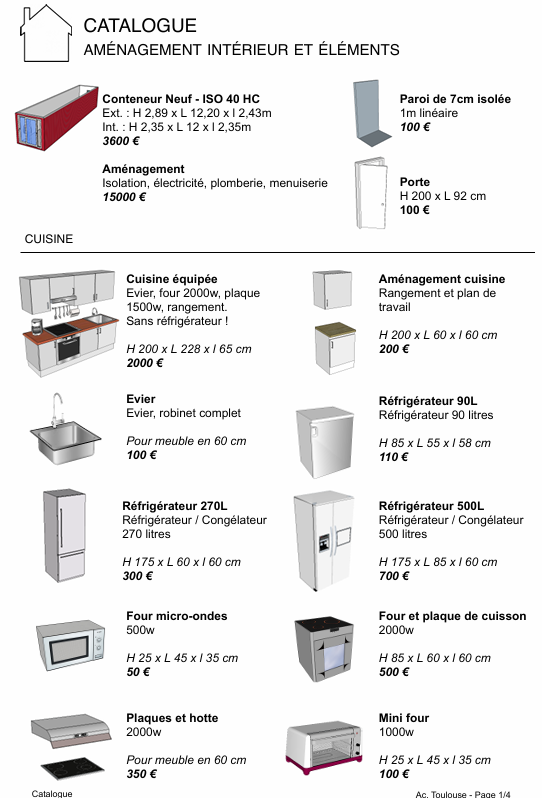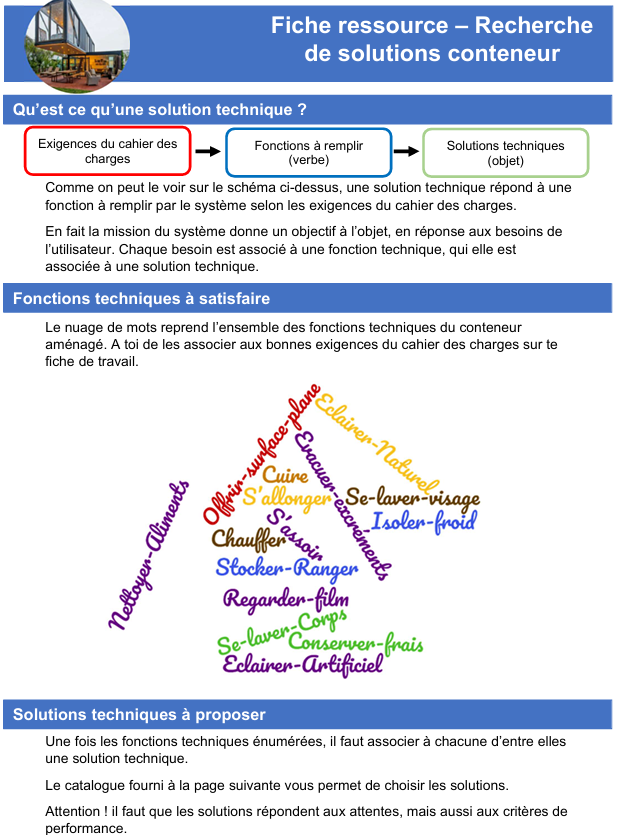 - Identifier une solution d'équipement pour chaque fonction du conteneur.